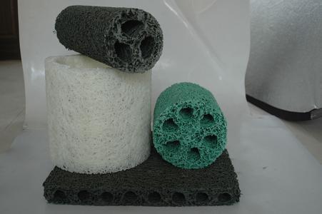 塑料盲溝是由塑料芯體外包裹濾布組式。塑料芯體是以熱可塑性合成樹脂為主要原料,經(jīng)過改性,在熱熔狀態(tài)下,通過噴咀擠壓出細的塑料絲條,再通過成型裝置將擠出的塑料絲在結(jié)點上熔接,形成三維立體網(wǎng)狀結(jié)構(gòu)。目前塑料芯體有矩形、中空矩陣、圓形中空圓形等多種結(jié)構(gòu)形式。該材料克服了傳統(tǒng)盲溝的缺點,具有表面開孔率高,集水性好,空隙率大,排水性好,抗壓性強,耐壓性好,柔性好,適應土體變形,耐久性好,重量輕,施工方便,工人勞動強度大大下降,施工效率高,因而受到工程局的普遍歡迎,并得到廣泛的應用。