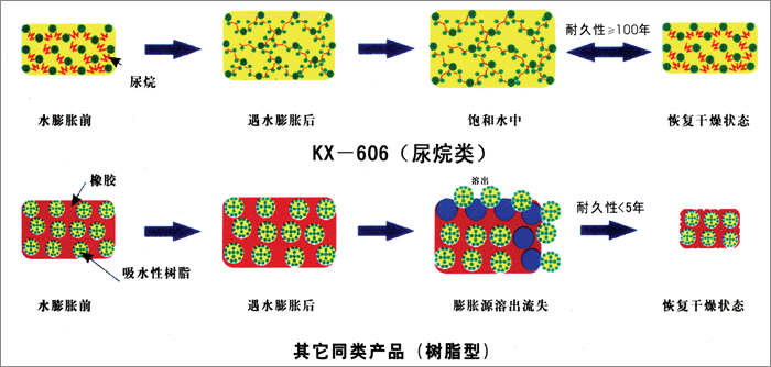 具有橡膠的彈性止水和遇水后自身的體積膨脹止水的雙密封止水機(jī)理。