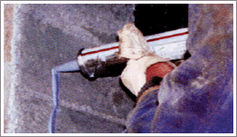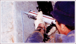把KX-606管裝到密封搶上,邊扣動(dòng)扳機(jī)邊擠出KX-606施工。為使擠出的KX-606良好附著于混凝土表面,應(yīng)將出口前端向混凝土表面。施工后應(yīng)確認(rèn)混凝土基面和KX-606間無縫隙,擠出的KX-606是連續(xù)均勻地敷設(shè)在基面上。如遇擠出出現(xiàn)不連續(xù)或不均勻,可以用刮片適當(dāng)刮勻或修整。