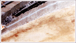 從KX-606施工到下次澆注混凝土如果期限較長,請(qǐng)注意保護(hù)KX-606不要浸水。如果遇浸水引起水膨脹而使KX-606剝離,在澆注混凝土前必須加以修補(bǔ)。修補(bǔ)方法如下;先用釘子固定剝離的LX-606 ,除去積水;再除去剝離的KX-606,重新施工。